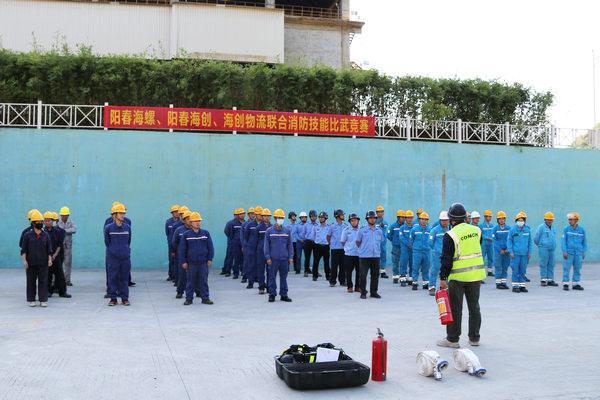 筑牢安全“防火墻”——陽(yáng)春海創(chuàng)與陽(yáng)春海螺聯(lián)合開(kāi)展消防技能比武活動(dòng)