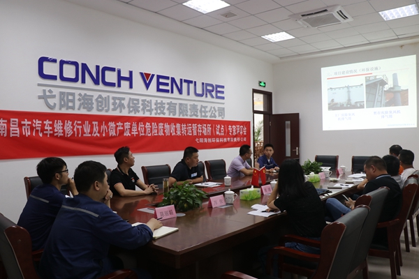 ? ? 下午2時,南昌市汽車維修行業及小微產廢單位危險廢物收集轉運暫存場所(試點)專家評審會在公司四樓會議室召開,會議由總經理助理金玉華主持并向與會專家和代表介紹了公司發展概況與規劃展望,生產處處長助理王偉匯報了項目建設的處置設施運行狀態、環保措施落實情況及2018年度危險廢物經營情況,專家組結合現場查驗與匯報材料,經過認真討論,認為弋陽海創環保具備南作為“南昌市汽車維修行業及小微產廢單位危險廢物集中收集貯存場所建設試點單位”的條件。