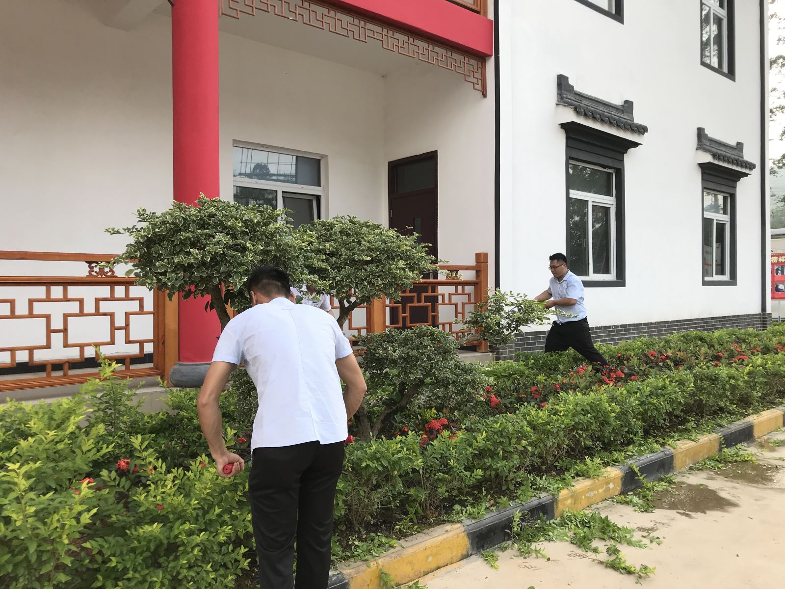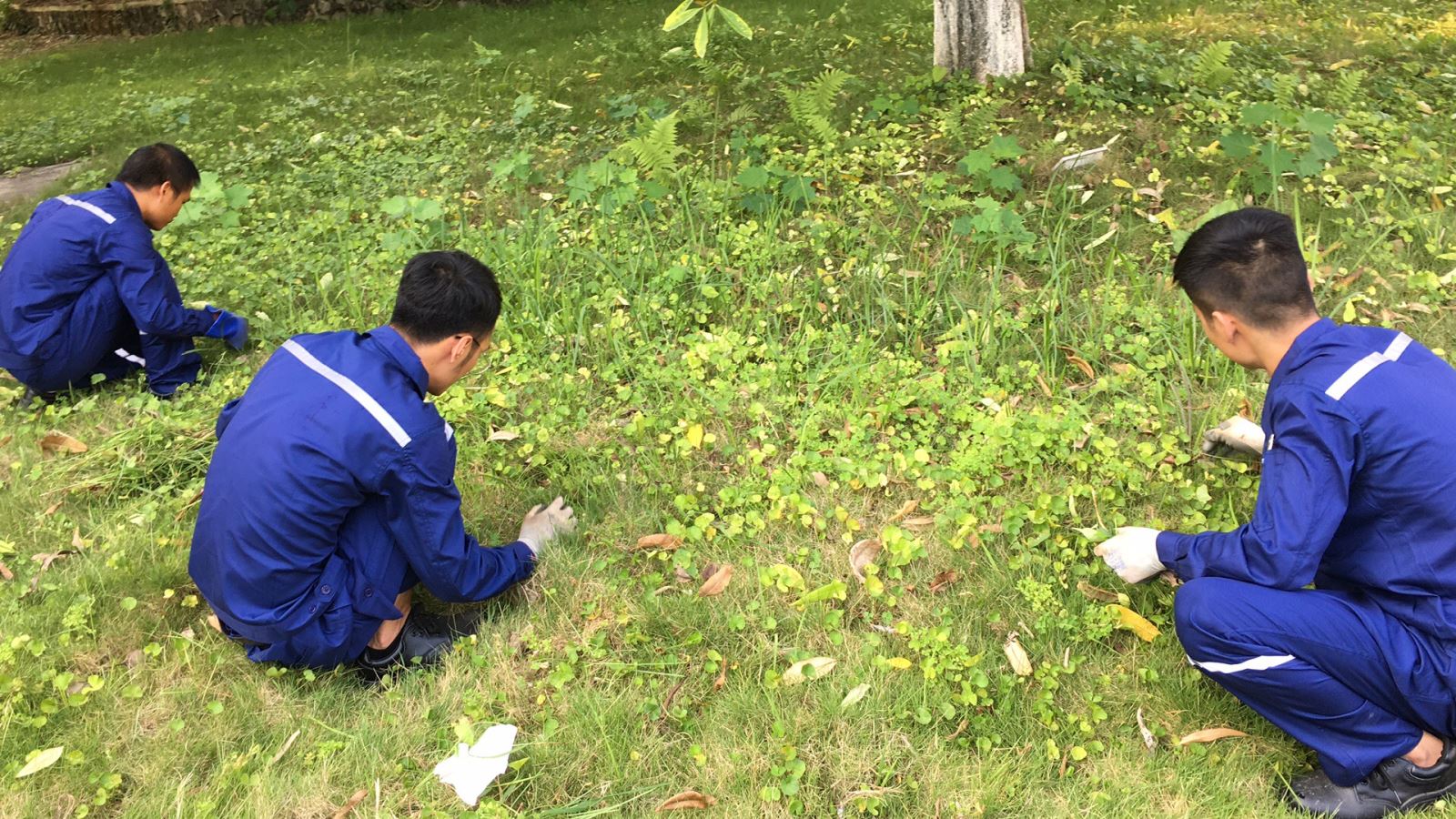 ? ? 另一組員工至公司辦公樓、生活區(qū)2#、3#樓集體宿舍宿舍進(jìn)行綠化帶修剪及除草、拔草,對綠化苗木進(jìn)行日常管養(yǎng),提高綠化景觀效果。