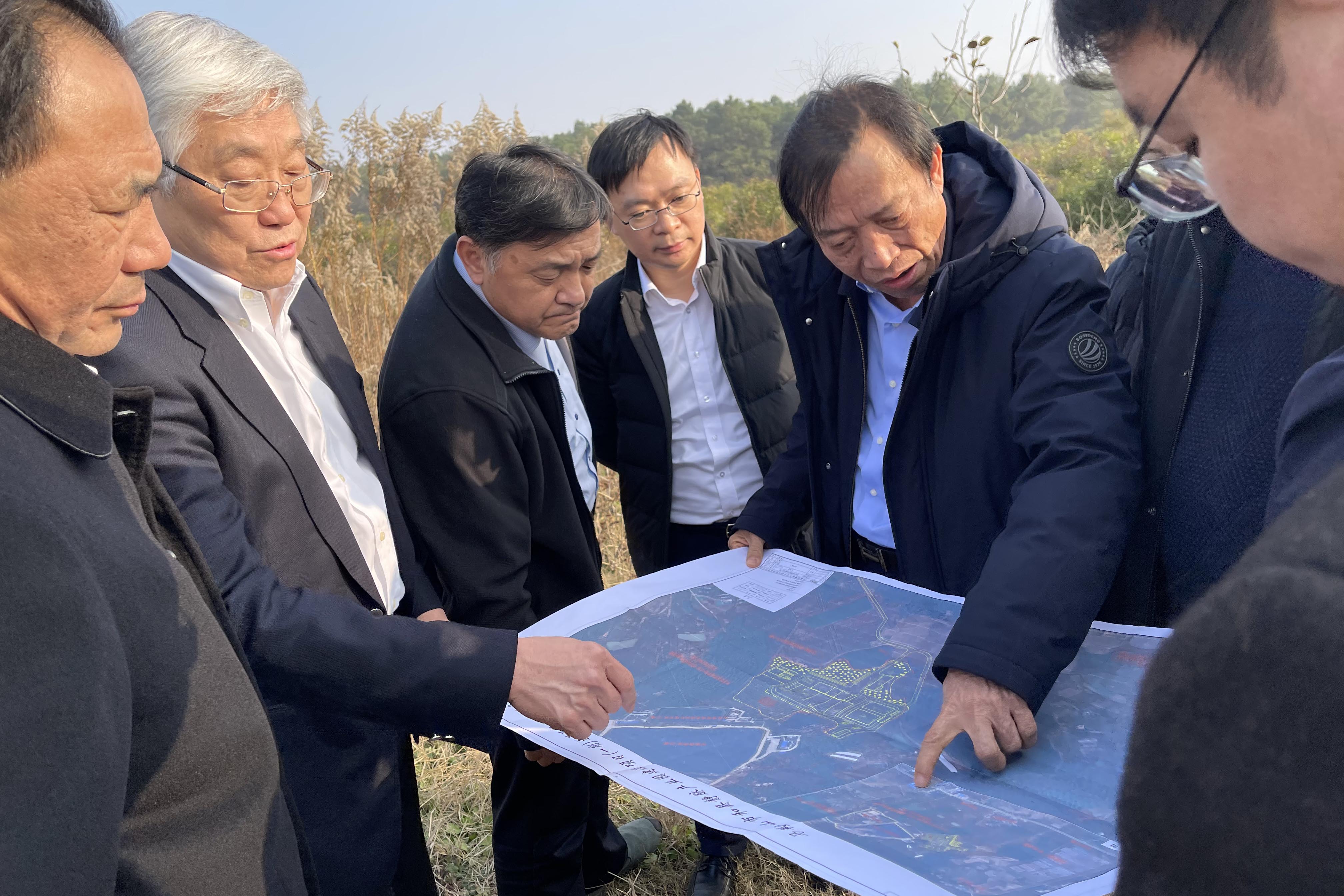 項目簽約前,紀勤應總經理一行前往項目選址進行了實地踏勘,對征地測繪、道路建設、總圖優化等事項進行了具體布置。
