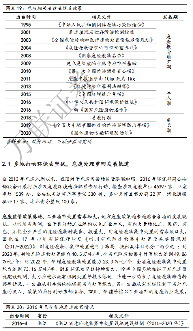 北極星固廢網獲悉,萬聯證券測算2020年工業危廢年產量已超過1億噸,但由于持證企業產能利用率低、處置種類錯配等因素,持證危險廢物處理規模僅達34%,CR8僅達28%。伴隨政策落地以及運營監管的加強,未來行業將逐漸規范化,龍頭企業將迎來新的一輪合并期,市場占有率將進一步提升。