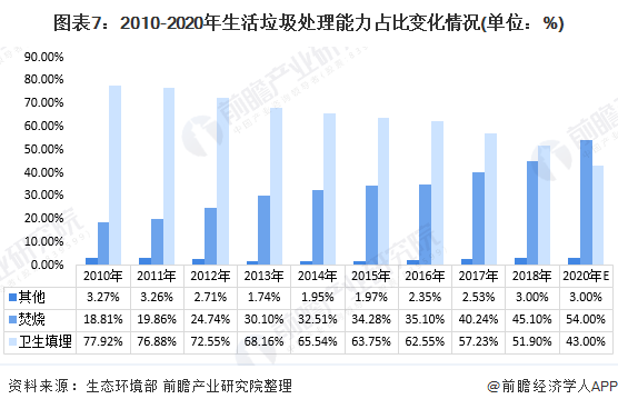 以生活垃圾為例。對生活垃圾的具體處理式有許多種,其中最常見的分別是衛生填埋、焚燒和其他方式。目前,我國以衛生填埋的應用最廣,所占收運量的比例也最高;焚燒則通常限定在沿海地區。根據“十三五”規劃,到2020年,我國生活垃圾處理方式中,焚燒處理將成為大頭,占比將達54%。