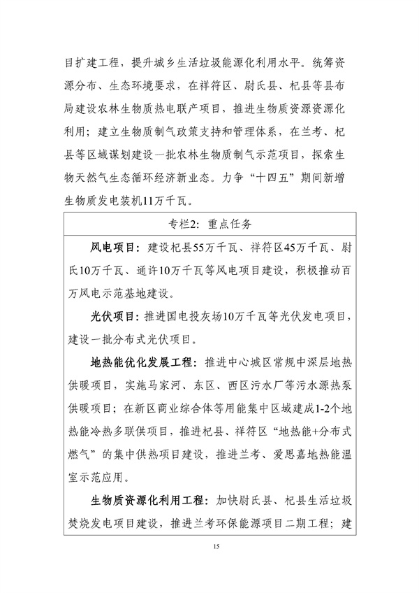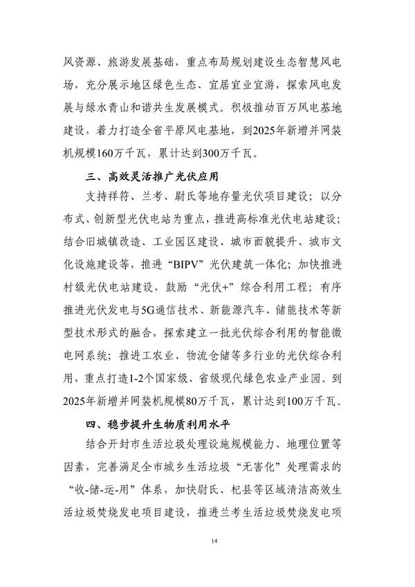 日前,河南開封就《開封市“十四五”現(xiàn)代能源體系和碳達(dá)峰碳中和規(guī)劃(征求意見稿)》公開征求意見,該規(guī)劃指出,穩(wěn)步提升生物質(zhì)利用水平,結(jié)合開封市生活垃圾處理設(shè)施規(guī)模能力、地理位置等因素,完善滿足全市城鄉(xiāng)生活垃圾“無害化”處理需求的“收-儲(chǔ)-運(yùn)-用”體系,加快尉氏、杞縣等區(qū)域清潔高效生活垃圾焚燒發(fā)電項(xiàng)目建設(shè),推進(jìn)蘭考生活垃圾焚燒發(fā)電項(xiàng)目擴(kuò)建工程,提升城鄉(xiāng)生活垃圾能源化利用水平。統(tǒng)籌資源分布、生態(tài)環(huán)境要求,在祥符區(qū)、尉氏縣、杞縣等縣布 局建設(shè)農(nóng)林生物質(zhì)熱電聯(lián)產(chǎn)項(xiàng)目,推進(jìn)生物質(zhì)資源資源化利用;建立生物質(zhì)制氣政策支持和管理體系,在蘭考、杞縣等區(qū)域謀劃建設(shè)一批農(nóng)林生物質(zhì)制氣示范項(xiàng)目,探索生物天然氣生態(tài)循環(huán)經(jīng)濟(jì)新業(yè)態(tài)。力爭“十四五”期間新增生物質(zhì)發(fā)電裝機(jī)11萬千瓦。詳情如下: