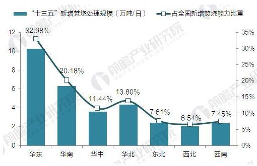 ? ? “十三五”中國垃圾焚燒發(fā)電能力區(qū)域分布