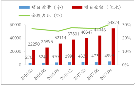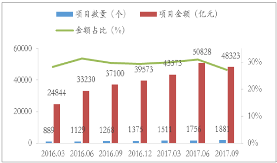 財(cái)政部PPP項(xiàng)目數(shù)量/投資額統(tǒng)計(jì)(截止2017年9月末)