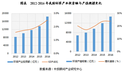 ? ? 中投顧問發布的《2018-2022年中國生活垃圾處理行業深度調研及投資前景預測報告》數據顯示,“十三五”時期,環保產業投資將達到17萬億元,2016作為開局之年,投資額與投資額占GDP比重均顯著上升,環保產業產值增速提高,增幅超過20%,全年環保產業呈現明顯上漲態勢,產業活躍度高。