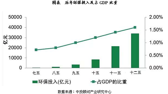 ? ? “十二五”期間環保產業投資額占到GDP的1.5%,投資總額將達到3.4萬億,較“十一五”期間大幅增長。