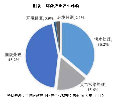? ? 在環保產業中,污水處理、大氣污染處理與固體廢棄物處理三大領域占到總體產值的98%,產業發展相對成熟,企業數量眾多,但集中度低。在“十三五”時期,各領域龍頭企業不斷延伸產業鏈和拓展業務領域,成長為環境綜合服務商,企業間的并購事件將不斷增加。