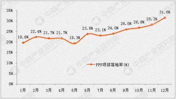 2016年各月份中國PPP項目落地率變化趨勢圖