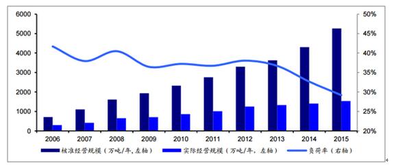 ? ? 根據(jù)《2016年全國大中城市固體廢棄物污染環(huán)境防治年報(bào)》截止2015年底,全國各省(區(qū)、市)頒發(fā)的危險廢物(含醫(yī)療廢物)經(jīng)營許可證2034份,全國危廢廢物經(jīng)營單位核準(zhǔn)經(jīng)營規(guī)模達(dá)到5263萬噸/年,從實(shí)際利用處置情況來看(持有危廢經(jīng)營許可證的單位收集、利用、貯存及處置危險廢物的實(shí)際數(shù)量,不包括單位自行利用處置的量),2015年危險廢物實(shí)際經(jīng)營規(guī)模為1536萬噸,為核準(zhǔn)利用規(guī)模的29.18%。危廢許可證處理資質(zhì)和市場需求的錯配導(dǎo)致資質(zhì)的整體負(fù)荷率低下。