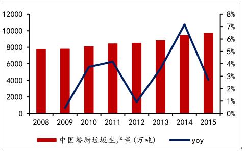 ? ? 隨著經濟的增長,居民消費水平的提高,人們在餐飲方面的消費與日俱增,帶來了餐廚垃圾的迅速增長,據統計,2015年全國餐廚垃圾年產生量達9500萬噸,日均產量達26萬噸/日,其中主要城市餐廚垃圾產生量達6000多萬噸,上海、北京、重慶、廣州等餐飲業發達城市問題尤為嚴重,餐廚垃圾日產生量達到2000噸以上。2016年,全國餐廚垃圾產生量約在9700萬噸左右。