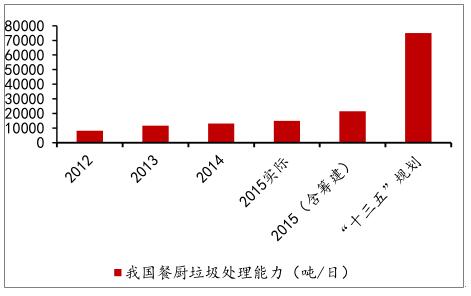? ? 根據《“十三五”全國城鎮生活垃圾無害化處理設施建設規劃》“十三五”期間我國將新增餐廚處理能力3.44萬噸/日,對應投資額183.5億元。盡管餐廚垃圾擁有巨大的市場,國家和地方政府也出臺一系列政策扶持行業發展,但餐廚垃圾處理項目實施進度仍然很緩慢,低于市場預期。截至2015年末,全國已投運、在建、籌建的餐廚垃圾處理項目(50t/d以上)約有118座,總計處理能力約2.15萬噸/日,并且籌建中的40座處理設施(處理能力0.66萬噸/日),大部分僅處于完成立項階段,剔除這部分,我國餐廚垃圾實際處理能力不超過1.4萬噸/日,日處理率僅為5.5%,要完成“十三五”新增目標壓力較大。現有餐廚垃圾處理能力的缺口將帶來較大的投資機會。