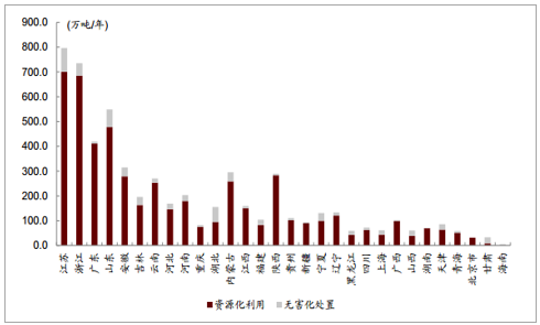 ? ? 我們?nèi)绻僭O(shè)官方在處理量上的數(shù)據(jù)不存在低估的現(xiàn)象,這就導(dǎo)致了實(shí)際的綜合利用率和處臵率大幅降低的情況。我們估計(jì), 2016 年綜合利用率和處臵率只能分別達(dá)到 26%和 16%左右,比官方的數(shù)據(jù)要低 25%和 16%以上。同時(shí),各省市目前已批準(zhǔn)危廢處理資質(zhì)尚且不足。我們統(tǒng)計(jì)各個(gè)省市環(huán)保廳發(fā)放的危廢處理資質(zhì)和產(chǎn)能,可以發(fā)現(xiàn)現(xiàn)在總計(jì) 1810 家企業(yè)獲得省級(jí)危廢處理資質(zhì),總核準(zhǔn)產(chǎn)能5880 萬噸/年。按照我們預(yù)計(jì)的每年 8000 萬到 1 億噸的危廢生產(chǎn)量,危廢處理能力依舊遠(yuǎn)遠(yuǎn)不足。