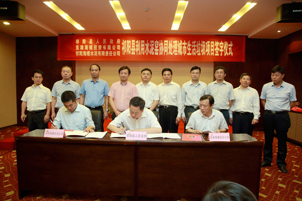 In the morning of 8 June 2014, “ The Cooperation Agreement about Municipal Waste Incineration Project in Qiyang” was officially signed by the government in Qiyang, Wuhu Conch Investment Co. Ltd. and Qiyang Conch Cement Co. Ltd.