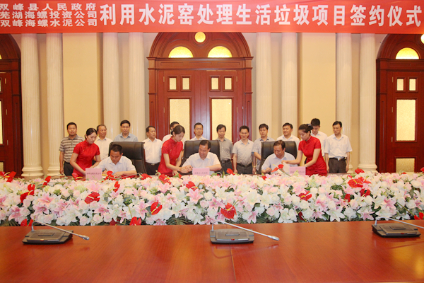 In the morning of 29 June 2014, “ The Cooperation Agreement about Municipal Waste Incineration Project in Shuangfeng” was officially signed by the government in Shuangfeng, Wuhu Conch Investment Co. Ltd. and Shuangfeng Conch Cement Co. Ltd.? ? ? ? ? ? ? ? ? ? ? ? ? ? ? ? ? ? ? ??