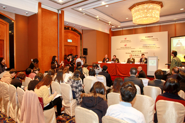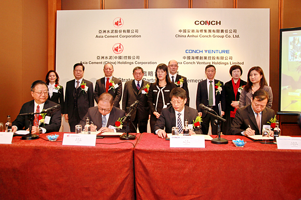 In the morning of Jan.7th, 2014, Anhui Conch Holdings, China Conch Venture respectively signed the strategic partnership agreement with Asian Cement and Asina Cement(China) in Marriot Hotel, HongKong. In future, each party of the agreement will enhance the widely cooperation in fields such as energy-saving and environmental protection, internationalizing development, new type of building materials, operation management, transportation and so on, to achieve the prospect of win-win.