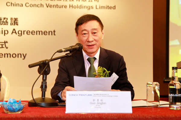 Guo Jingbin expressed that China Conch Venture had successfully listed in the main board of HongKong Stock Exchange in December, which led them to fasten there developing speed by means of HongKong international financing platform. They were very happy to be allied with Asian Cement. Recently, Chinese government have paid more attention on environmental protecion issues, especially enhanced the control of carbon emission in cement industry. According to the 41th document which was released by the State Council, the waste reduction function in dealing with garbage of cement industry should be fully developed, which happened to be the advantage of Conch Venture. He believe that the two parties would together chase the opportunities in energy conservation and environmental protection industry.